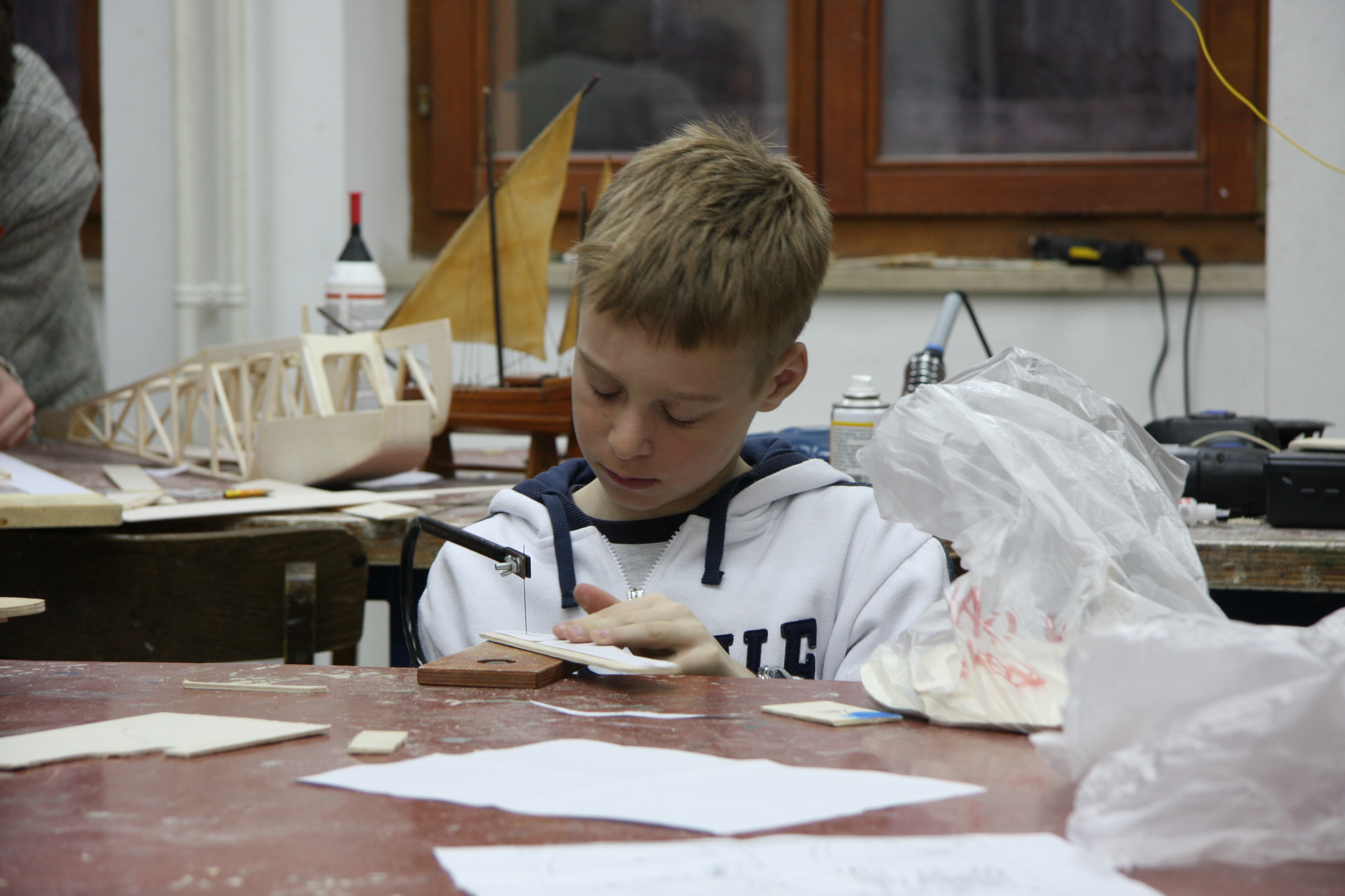 Večina izdelkov za začetnike je sestavljenih iz izžaganih delov mehke topolove vezane plošče. Sledi brušenje, sestavjanje, lepljenje in barvanje. V šolskem letu se izdela več preprostih modelov in uporabnih izdelkov.